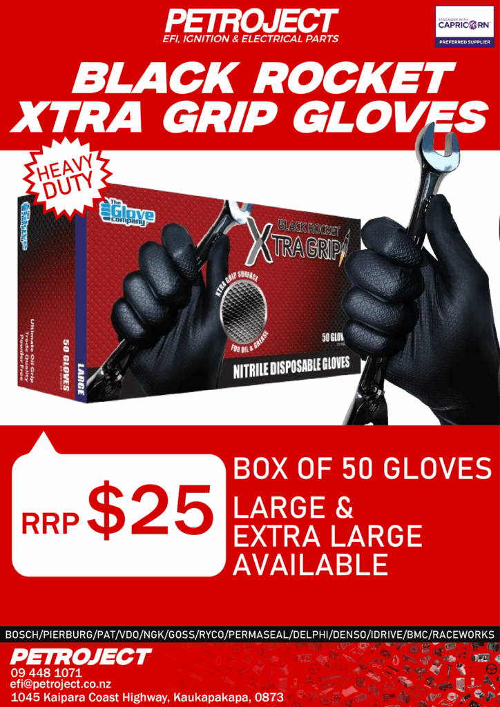 New & Improved! Black Rocket Xtra Grip® Nitrile Disposable Gloves feature extra technology-enhanced texture. The texture is made up of grooves and ridges that create a rough and grippy surface area on the gloves. The incredibly grippy Black Rocket Xtra Grip® Nitrile Disposable Gloves are suited for use across the automotive, industrial, building, coatings & mining sectors.